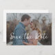 Ein moderner und lässiger Ankündigung Datum freihalten mit Ihrem bevorzugten Foto in Horizontale/Landschaft überlagert mit "Save the Date" im modernen, lässigen und handgeschriebenen Schriftart. Die Farbe davon ist editierbar. Persönlich gestalten, indem Sie Details Ihrer Hochzeitswebsite mit einem QR-Code auf der Rückseite hinzufügen.