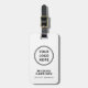 Moderne berufliche Gepäckmarke in Schwarzweiß mit Firmenlogo und QR-Code für Ihr Unternehmen oder Ihre Organisation. Fügen Sie einen Namen und Titel in einfacher Typografie hinzu.