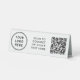 Modernes Tischzelt mit Logo und QR-Code für Kunden, die eine Bezahlung vornehmen oder eine Liste Ihrer Produkte, Dienstleistungen, Preise oder anderen Informationen erhalten möchten.