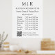 Modernes, Minimalistisches Business-Stunden-Poster-Zeichen. Schwarz & Weiß oder wählen Sie Ihre eigenen Farben. Fügen Sie dem QR Scan Code Ihre Website oder Web-Adresse für Social Media hinzu. Ideal für Einzelhändler, kleine Geschäfte, Salons, Wellness-Center, Bäckereien, Cafés, Restaurants, Bars und vieles mehr. Einfach mit Ihren Monogramm-Initialen, Firmennamen und Informationen, Fotos, Slogan oder sogar mit Ihrem Logo oder persönlichem Markendesign personalisieren.
