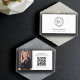 Moderne berufliche Notarkarte mit Foto und Logo auf weißem Hintergrund. Auf der Rückseite finden Sie die Kontaktdaten und den QR-Code. Sie können die Textgröße, den Schriftart, an Ihren eigenen Stil anpassen. Ersetzen Sie dieses Foto mit der eigenen Visitenkarte zur Porträtausrichtung.