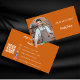 Ein verbrannter, orangefarbener Hintergrund. Personalisieren Sie Ihren Titel, Geschäftsnamen/Namen und Text und fügen Sie ihn vorn hinzu. Weißer Text. Ein bogenförmiger Rahmen aus Foto. Zurück: Vorlagen für Ihren Namen, Titel, Telefonnummer, E-Mail- und Website-Adresse, Ihren eigenen QR-Code für Ihre Website oder Ihr Social-Media-Konto. Facebook und Instagram Icons/account.
