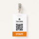 Personalisieren Sie diese Abzeichen ohne Foto, mit lesbarem Qr Code (es funktioniert immer!) und Bar Code und großem Firmenlogo. Dieser Firmenid-Maker hat ein einfaches Business-Namensschild-Design in orangefarbenen und weißen Farbtönen, die in Vorder- und Rücken-Größen, serifenlosen, einfachen und modernen Schriftart und einem beruflichen und klaren Aussehen, perfekt für kleine Geschäftsangestellte, Chef, Gäste. Diese Business-ID-Abzeichen sind mit Lanyard, Metallklammer oder mit Retraktierbar erhältlich. Genießen Sie den exzellenten Zazzle-Abzeichen-Druck-Service! Keine Mindestbestellung, und je mehr Sie kaufen, desto mehr rette Sie. Große Rabatte sind bei mehreren Bestellungen erhältlich, auch für verschiedene Mitarbeiter!