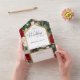 MIT ODER OHNE QR-CODE ODER ABENDESWÄHLUNGSOPTIONEN. Dieses Design zeichnet sich durch einen schwarzen Holzfußboden mit schönen rustikalen Blume in Rot und Weiß aus. Der weiße Textbereich ist in der Goldfolie der Imitate gerahmt. Ein Monogramm mit dem ersten Auftakt der Braut und des Bräutigams auf der Außentafel vervollständigt es. Ideal für einen Winterurlaub Hochzeit oder Valentinstag, aber perfekt für das ganze Jahr! Erstellt von der einfachen Farmhouse Press.