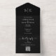 Diese schicke, minimalistische All-in-One-Einladung zur Schwarzweiß-Hochzeit kann mit Ihren Monogramm-Initialen und Hochzeitstag-Informationen personalisiert werden. Die Einladung beinhaltet ein perforiertes UAWG mit Ihrem Hochzeitswebsite QR Code und Details. Entwickelt von Thisisnotme©