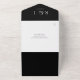 Eine elegante Schwarz-Weiß-minimalistische All-in-One-Hochzeitseinladung mit Ihrem besonderen Datum und Ihre Hochzeitsdetails Set in klassischer, schicke Typografie. Die Einladung enthält eine perforierte RSVP-Karte mit Ihrem Hochzeitswebseiten QR Code und Details. Entwickelt von Thisisnotme©