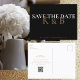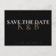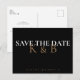 Schwarzes Monogramm Save the Date. Postkarte. Gold, Schwarz und Weiß.