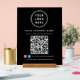 Modernes schwarzes Acrylzeichen für Ihr Geschäft. Geben Sie Ihre Website-Adresse ein, um einen skalierbaren QR-Code zu erstellen, den Kunden und Kunden verwenden können, um eine Liste Ihrer Produkte, Dienstleistungen und Preise zu sehen. Laden Sie Ihr Logo hoch und fügen Sie Ihren Firmennamen, Telefonnummer und Straßenadresse in einer einfachen weißen Typografie hinzu. Fügen Sie Ihre instagram und facebook Benutzer-ID für Kunden, um Ihnen auf Social Media folgen.