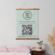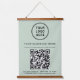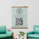 Modernes hellgrün hängendes Wandteppichzeichen für Ihr Unternehmen mit QR-Code für Kunden, um eine Liste Ihrer Produkte, Dienstleistungen und Preise zu suchen. Fügen Sie Ihr Logo, Ihren Firmennamen, QR-Code, Ihre Telefonnummer und Ihre Straßenadresse in einfacher Typografie hinzu. Die Farben des Hintergrunds und des Textes können durch Editieren im Designwerkzeug auf Ihre Markenfarben geändert werden.