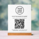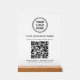 Modernes weißes Acrylzeichen für Ihr Geschäft mit Ihrem QR-Code für Kunden zu scannen, um eine Zahlung zu machen, siehe eine Liste Ihrer Produkte, Dienstleistungen und Preise, buchen Termine, registrieren, etc. Laden Sie Ihr Logo und Ihren QR-Code hoch und fügen Sie Ihren Firmennamen, Telefonnummer, Straßenadresse oder andere Informationen in einfacher Typografie hinzu.
