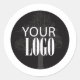 Dieses Design verfügt über eine Aufklebervorlage mit Ihrem Logo hier, erstellen Sie Ihr Business-Stil Aufkleber, mit einem modernen, trendigen, schwarz-weiß, einfach, minimalistisch Stil, perfekt für jedes kleine Unternehmen