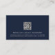 Verlass mit unserer beruflichen QR Code Business Card in marineblau und grau einen bleibenden Eindruck. Die Vorderseite dieser Karte ist mit einem eleganten und soliden marineblauen Hintergrund mit Ihrem Firmennamen und wesentlichen Kontaktinformationen ausgestattet, die elegant in klassischer Typografie präsentiert werden. Laden Sie Ihren QR-Code in und Netzwerk mit Sicherheit hoch, während Sie Ihre beruflichen Daten zeigen. Auf der Rückseite gibt es Raum für individuelle Details wie Ihren Namen, Titel oder Rolle, und persönliche Kontaktdaten auf einem sauberen, weißen Hintergrund. Diese Visitenkarte zeichnet sich durch ihre Eleganz und Professionalität aus und macht sie zu einem leistungsstarken Werkzeug für die Vernetzung und Vertretung Ihrer Marke.