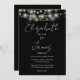 Diese Schwarz-Weiß-Zeichenkette leuchtet elegante Skript-Hochzeitseinladung kann mit Ihren Informationen in schicker Typografie mit Ihren Hochzeitswebsite-Details und Ihrem QR-Code auf der Rückseite personalisiert werden. Entwickelt von Thisisnotme©