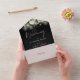 Das Ganze in einer Schwarz-Weiß-Hochzeitseinladung mit botanischer Vegetation, Lichtern mit Saiten und eleganter Typografie. Die Einladung enthält eine perforierte RSVP-Karte mit Ihrem Hochzeitswebseiten QR Code und Details. Entwickelt von Thisisnotme©