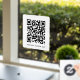 Eine einfache, benutzerdefinierte weiße QR-Code Vinyl-Fenster Klammern Dekorzeichenvorlage in einem modernen minimalistischen Stil, der leicht aktualisiert werden kann mit Ihrem QR-Code und benutzerdefinierten Text, z. B. scannen Sie mich zu.. #QRcode.
