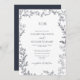 QR Code Leaf Navy Blue Elegant Monogram Wedding Einladung