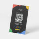 Google Review Schild mit QR-Code-Link und Ihrem Firmennamen oder Logo mit schwarzem Hintergrund. Personalisieren Sie ein Geschäftszeichen, um eine einzigartige smarte Gelegenheit für Sie zu sein, um Ihre Kunden fragen, einen Fünf-Sterne-Test für Ihren Shop auf Google verlassen und Ihre Geschäftspräsenz online zu fördern.