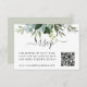 Diese Hochzeitskarte mit RSVP-Gehäuse ist mit einem bemalten Aquarelleukalyptus, grünen Blätter mit moderner Kalligraphie und einem QR-Code-Weblink ausgestattet. Für eine erweiterte Anpassung dieses Designs klicken Sie bitte auf die Schaltfläche BLAU DESIGN TOOL oben. Matching-Elemente sind ebenfalls verfügbar.
