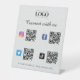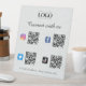 Mit diesem coolen Podestschild mit 4 QR-Codes, benutzerdefinierten Firmenlogos und Text erhalten Sie mehr Anhänger. Fügen Sie einfach Ihre Daten hinzu, indem Sie auf "Personalisieren" klicken.