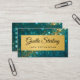 The shimmering teal background and metallic gold accents create a glamorous, high-end look that reflects your artistry and attention to detail.