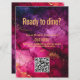 Die doppelseitige, flache Menükarte mit QR-Code aus der Kollektion "Celestial Elegance: The Marble Symphony", eine raffinierte und funktionelle Ergänzung zu Ihrem Hochzeitsempfang. Vor der atemberaubenden Marmor-inspirierten Kulisse mit elegantem, in Weiß und Weiß gedecktem Weinkeller lädt die Caption "Ready to dine?" zum Verweilen ein. Unter der Beschriftung befindet sich Platz für anpassbaren Text, wo Sie eine Nachricht oder Details über das Essen hinzufügen können. Das Design wird durch eine Touch von himmlischem Charme ergänzt, wobei die raffinierte Ästhetik der Sammlung erhalten bleibt. Die elegante Präsentation dreht auf der Rückseite der Karte und setzt sich mit einem lila, dunklen Hintergrund fort, der mit demselben Marmorbild geschmückt ist und ein durchgängiges und raffiniertes Aussehen schafft. Hier werden die Paarnamen, das Hochzeitsdatum und der Veranstaltungsort elegant angezeigt, was der Speisekarte eine personalisierte Touch verleiht. Auf dieser Seite finden Sie auch einen QR-Code, der den Gästen den Zugang zum digitalen Menü und weitere Informationen zum kulinarischen Angebot des Abends erleichtert. Diese doppelseitige, flache Menükarte dient nicht nur als praktische Anleitung für Ihren Hochzeitsempfang, sondern verbessert auch die Ästhetik mit ihren schönen Designelementen. Es ist Teil der umfangreichen Kollektion "Celestial Elegance: The Marble Symphony", die koordinierte Schreibwarenoptionen anbietet, um das Ambiente Ihres besonderen Tages zu erhöhen.