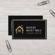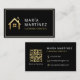 Eine elegante schwarz-goldene Visitenkarte mit modernem QR-Code für unkomplizierten Kontakt und einfache Buchung. Dieses minimalistische Design besticht durch ein luxuriöses goldfarbenes Hauslogo und eine saubere Typografie, die sich perfekt für Reinigungsdienste, Zimmermädchen, Hausmeister, Hausmeister, Hausmeister und Zuhause-Spezialisten eignet. Der skalierbare QR-Code fügt eine moderne Touch hinzu, die es für Kunden schnell und bequem macht, eine Reinigung zu buchen oder sich online mit Ihrem Unternehmen zu verbinden.