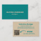 Modern simple trendy unique retro bold typography teal and beige business card with scannable QR code. Suitable for a professional interior or graphic designer, stylist, photographer, decorator, fashion store, hair stylist, lifestyle blogger, or social media influencer.