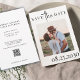 Minimalistisches trendy schicke Typografie-Skript Schwarz-Weiß Hochzeit speichern Sie die Datumskarte mit benutzerdefiniertem Foto, Text und Scan-Code auf der Website. ++++++++++++ Geeignet für eine rustikale Moderne in jeder Jahreszeit Hochzeit.