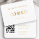 QR Code - Carte de visite en blanc/or. Design de lune. Modifiez votre produit en quelques minutes. Vous pouvez customiser la police/la couleur et la position en cliquant sur "Personnaliser plus". Parfait pour les guérisseurs, les travailleurs de l'énergie, les travailleurs légers, Yoga, Reiki, Wellness, Spa, Salon et plus.