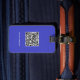 QR-Code, Name & Info, Blau & Weiß, elegant Gepäckanhänger