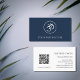 QR-Code Navy Blue Yoga Instructor Om Symbol Visitenkarte