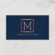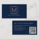 QR Code Navy Rose Gold Monogram Elegant Visitenkarte