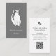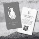 QR-Code-Visitenkarte für Haustiere mit niedlichem Schwarz-Weiß-Katzendesign auf grauem Hintergrund. Mit Schwarz-Weiß-Schrift können Sie eigene Informationen hinzufügen. Sie fügen auch Ihre Website zum QR-Codefeld hinzu. Ideal, um Ihr Heimtierdienstgeschäft zu fördern!
