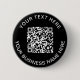 Simple promotional black button for your business or organization. Add your QR code or logo and two lines of customized white text, such as your company name, slogan, thank you, or leave blank.