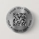 Simple promotional button for your business or organization with a brushed silver faux metallic background. Add your QR code or logo and two lines of customized text, such as your company name, slogan, thank you, or leave blank.