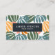 Groovy, Retro und beeindruckende botanische Netzwerkkarte mit digitalem Bild von Blätter in einer eleganten, warmen Erdpalette aus schwarz, orange, rosa, staubblau und grün auf weißem Hintergrund mit Platz für Ihren QR CODE OR LOGO auf der Rückseite. Ideal für Beauty-Salons, Wellness-Center, Kosmetologen, Ästhetiker, Tanzstudios, Boutiquen, Designer, Haar- und Modefachleute oder andere bildbewusste Stylist.