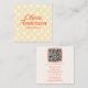 Wenn Sie eine perfekte und einzigartige quadratische Visitenkarte suchen, ist diese für Sie!! Ein einzigartiges und Retro-böhmisch-chic rosafarbenes trendiges, helles, feines Visitenkarten-Template. Mit einem schlichten, hellen Hintergrund mit einem eleganten, einzigartigen Orangenskript-Schriftart und handgezeichnetem Gelb-Schachbrett. Mit Vintag handgeschriebenem Titel oder Berufsvorlage. Und hinten haben wir die handgezeichneten Social Media Icons mit anderen Infos als Website und Kontaktinformationen und personalisierbaren QR Code. Sie können es einfach und einfach anpassen, indem Sie in der blauen Schaltfläche Personalisieren klicken und dann die Informationen ändern. Wofür du gewartet hast!! Greifen Sie und wir garantieren Ihnen die phantastische Qualität und den schnellen Versand.