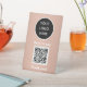 Modern, Zu bezahlen scannen, QR-Code, Business-Logo, Website, Rose goldenes Podestschild. Ideal für Ihr Geschäft. Personalisieren Sie es mit Ihren Daten, QR-Code und Logo.