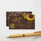 Rustikal elegante Sonnenblumen Hochzeit Einladung preiswert MINI SIZE Online-UAWG-Response-Gehäuse Karte mit Scan QR-Code (automatisch generiert) auf einem braunen Holzhintergrund mit Saiten von Tinkle-Lichtern. +++++++++++ Sehen Sie die Auflistung für passende Schreibwaren.