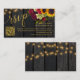 Rustikale, elegante Sonnenblumen und Rose Einladung MINI SIZE Online-UAWG-Gehäuse-Karte mit Scannen QR-Code (automatisch mit Ihrem Link generiert) auf einem dunkelbraunen Stallholz Hintergrund mit Saiten von Tinkle-Lichtern.