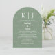 Gedruckt mit eleganten Monogrammen, Schwarz-weißen grauen Blätter Mustern und personalisierten Text-Vorlagen in individuellem, grünen Hintergrund mit QR-Code, um Ihre Hochzeitswebsite zu betreten! Alle Texte sind individuell anpassbar, können bearbeitet und personalisiert werden!