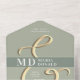 Simple, contemporain, minimal, unique sauge vert mariage invitation tout-en-un avec photo, code QR et élégante ampersand or tendance - monogramme avec initiales de mariée et mariée. Ajoutez votre URL et votre photo.