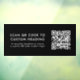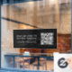 Eine einfache, benutzerdefinierte schwarze QR-Code Vinyl-Fenster Klammern Dekorzeichenvorlage in einem modernen minimalistischen Stil, der leicht aktualisiert werden kann mit Ihrem QR-Code und benutzerdefinierten Text wie Scan Me to Sign Up, Scan QR to View Products. Die perfekte Art, Ihre Veranstaltung oder Ihr kleines Unternehmen zu bewerben und zu bewerben!
