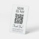 Einfaches modernes Tischschild für Ihr Unternehmen mit QR-Code für Kunden, die nach Zahlungen suchen. Fügen Sie Ihren QR-Code, Firmennamen, Telefonnummer und Straßenadresse in einfacher Typografie hinzu.
