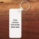Benutzerdefinierter QR-Schlüsselanhänger. Benutzerdefinierte Hintergrundfarbe (mit einer hellen Farbe). Benutzerdefinierter Text auf beiden Seiten.