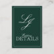 QR-Code Smaragdgrüne Monogramm Hochzeitdetails Begleitkarte