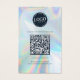 Custom Holographic Social Media QR Code Site Web Carte de visite vous pouvez facilement customiser. Réaffectez complètement ce modèle de conception à d'autres entreprises spéciales en cliquant sur "Modifier en utilisant l'outil de conception" imbriqué sous le bouton "Personnaliser" pour modifier la couleur, les polices et la disposition de l'arrière - plan. Ajoutez l'URL de votre site Web et nous créerons un code QR à ajouter à votre conception. Les gens peuvent scanner le code QR pour visiter l'URL.