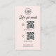 Faites une déclaration avec un carte de visite qui capte l'attention et vous connecte à votre public. En haut, votre logo occupe le devant de la scène et donne le ton à votre marque. Juste en-dessous, le titre ludique et accueillant *Let’s Get Social* en script rétro ajoute une touche de charme, encourageant les clients à s’engager avec votre présence en ligne. Deux codes QR sont placés en dessous, offrant ainsi aux clients un moyen rapide et facile d'accéder à vos profils de médias sociaux. Qu’il s’agisse de prendre un rendez-vous, de vérifier votre dernier travail ou de laisser un commentaire, ces codes QR permettent à vos clients de rester en contact avec vous sans effort. Conçu pour les professionnels de la beauté, les salons, les spas, les artisans, les propriétaires de petites entreprises et les travailleurs indépendants, ce carte de visite est plus qu’un simple contact, c’est une porte d’entrée vers votre monde numérique. C’est le parfait mélange de style et de fonctionnalité, en vous assurant que votre marque est toujours à portée de main de vos clients. Prêt à porter votre marque de médias sociaux au niveau supérieur ? Créez votre carte de visite personnalisé dès aujourd'hui et laissez votre marque prospérer à la fois en ligne et hors ligne !