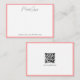 Elegant Modern Minimalist Blush Pink & White Handwritten Script Name QR Code Chic Template Horizontal Rectangle Flat Note Card.