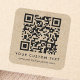 Quadratische Aufkleber mit QR-Code und benutzerdefinierter Text auf einem gedruckten Papier der Kraft-Papier sehen Hintergrund aus. Ändern Sie die Schriftart- und Schriftart-Farben, verschieben und verändern Sie Elemente mit dem Entwurfstool. Folgen Sie uns auf Facebook: @business stationery oder Instagram: @business.perfect custom for more products, news, sales and more.